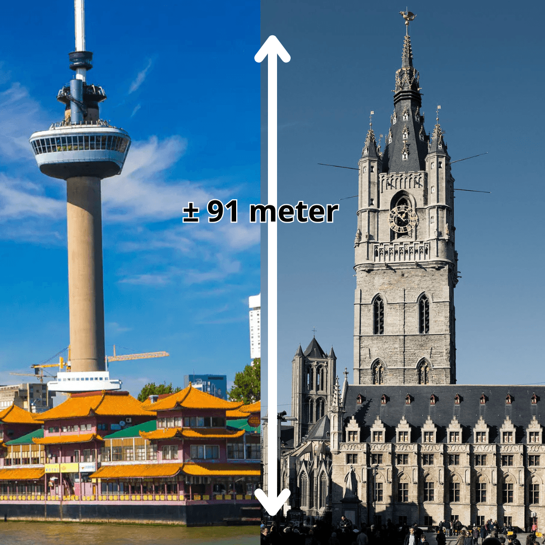 Dat is dus de hoogte van het Belfort van Gent dat ze elke dag scrollen. ONVOORSTELBAAR.